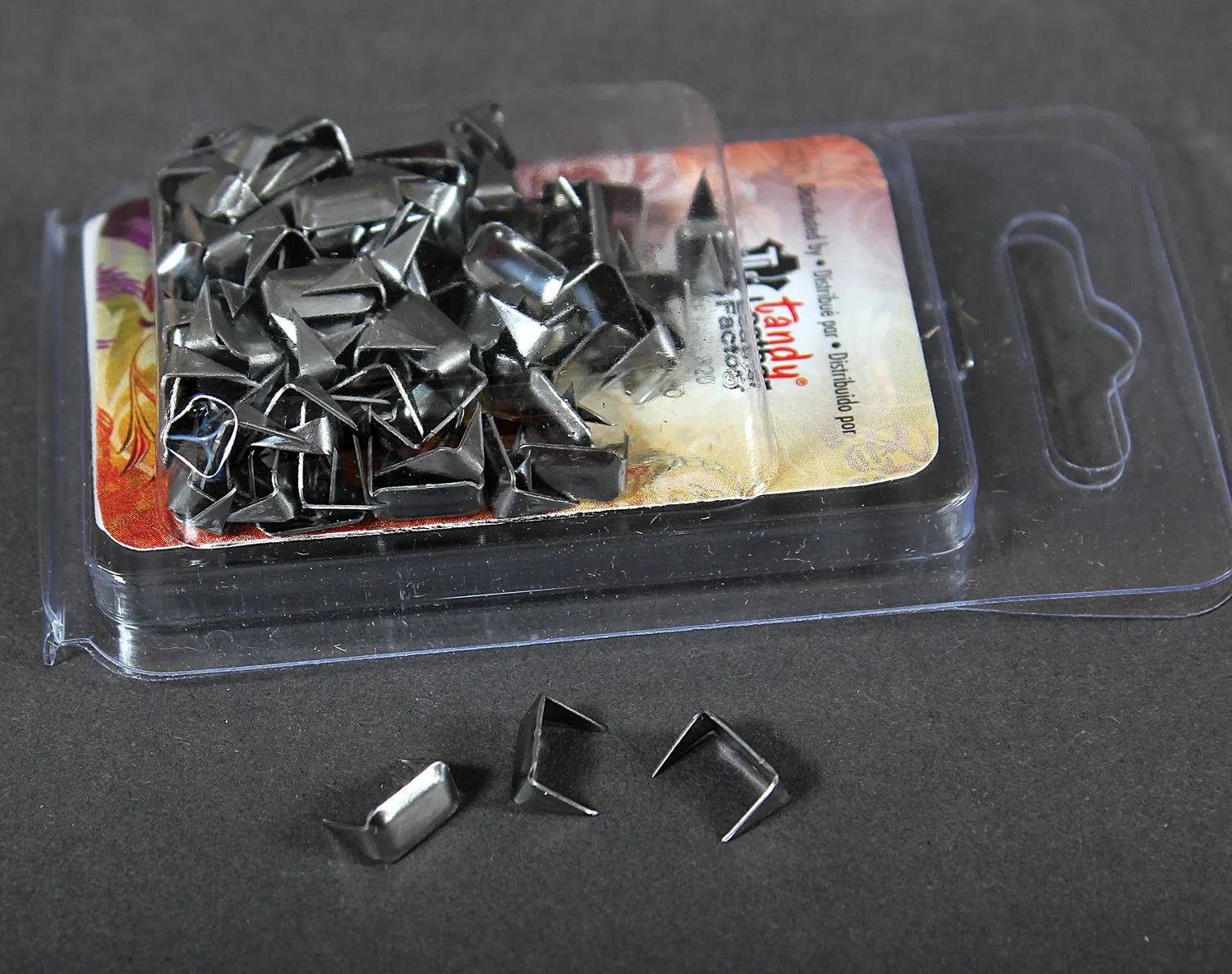 I have recently discovered a new piece of hardware for use with leather: The leather staple. They resemble a regular staple used in a stapler for holding papers together, only wider and with super sharp points.