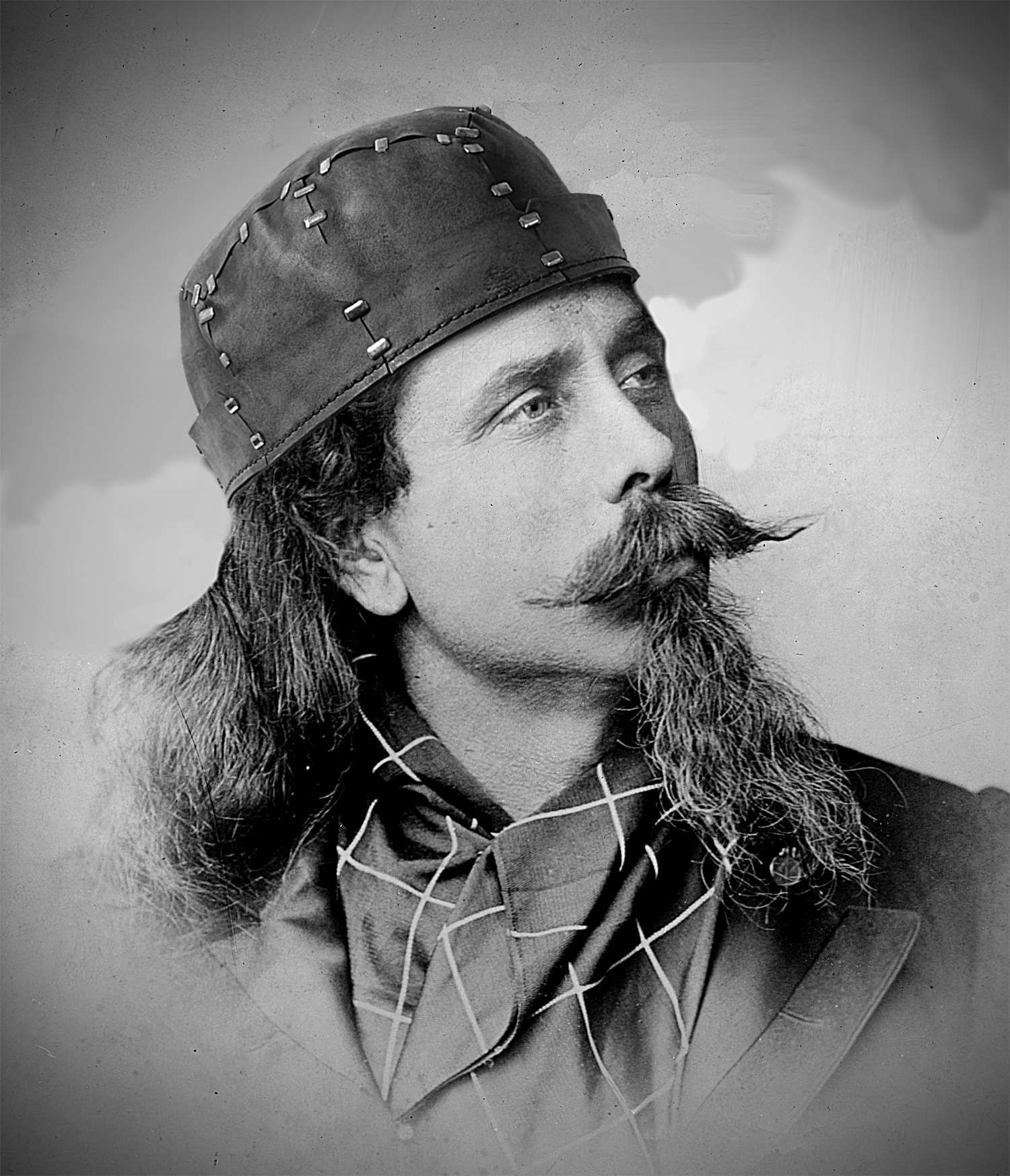 In order to try them out I made this cap made of 4 - 5 oz. veg tan leather. Since I like to make things that look old I photoshopped the cap into a 19th century photograph.