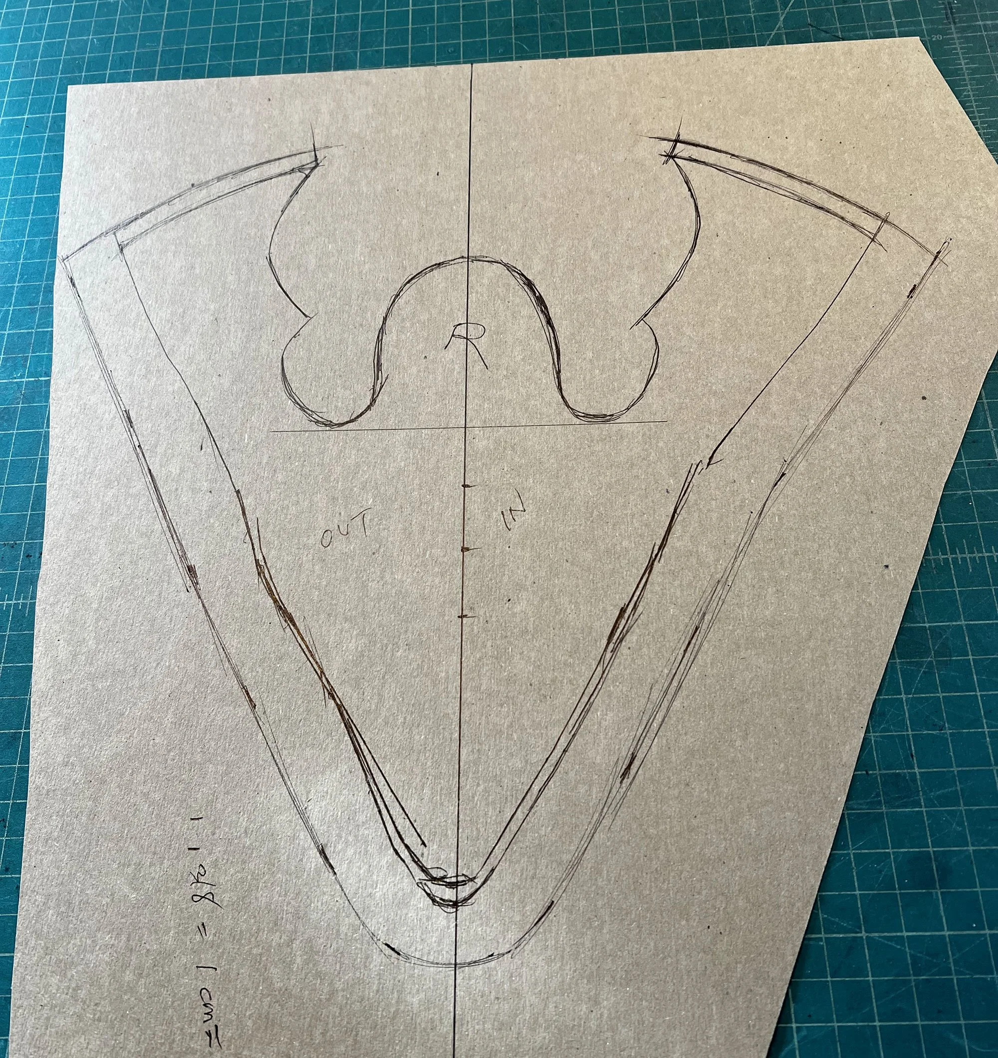 And to the left is the finished uppers pattern with seam allowance and stretch allowance marked, ready to be cut and transferred to the leather.