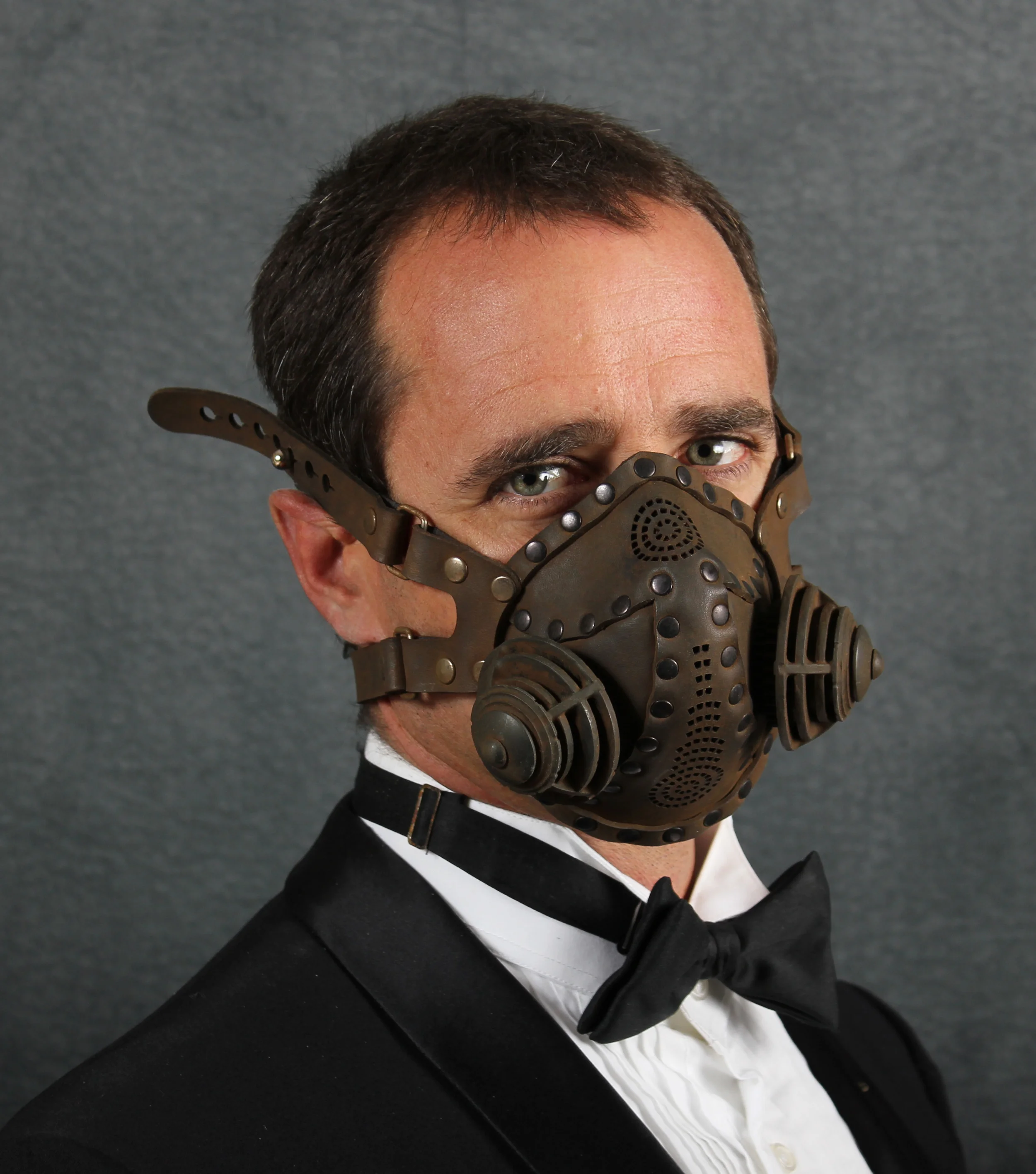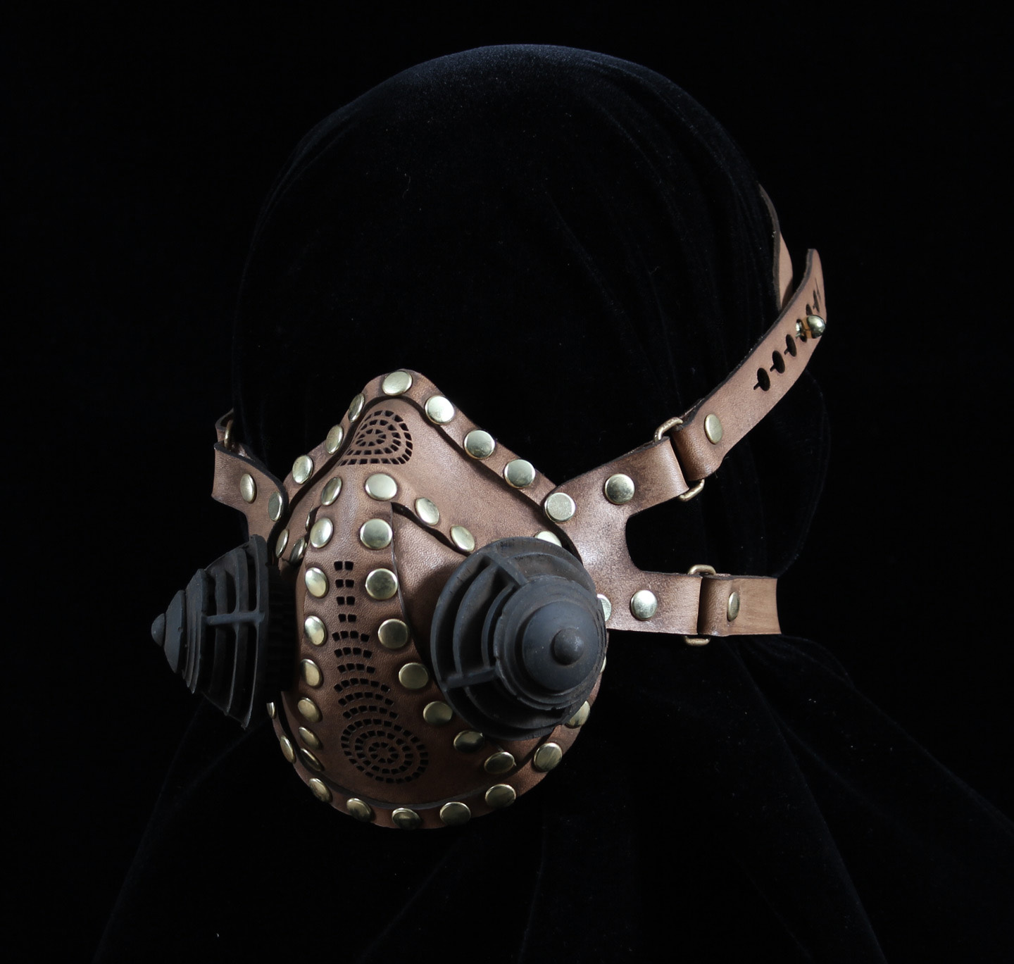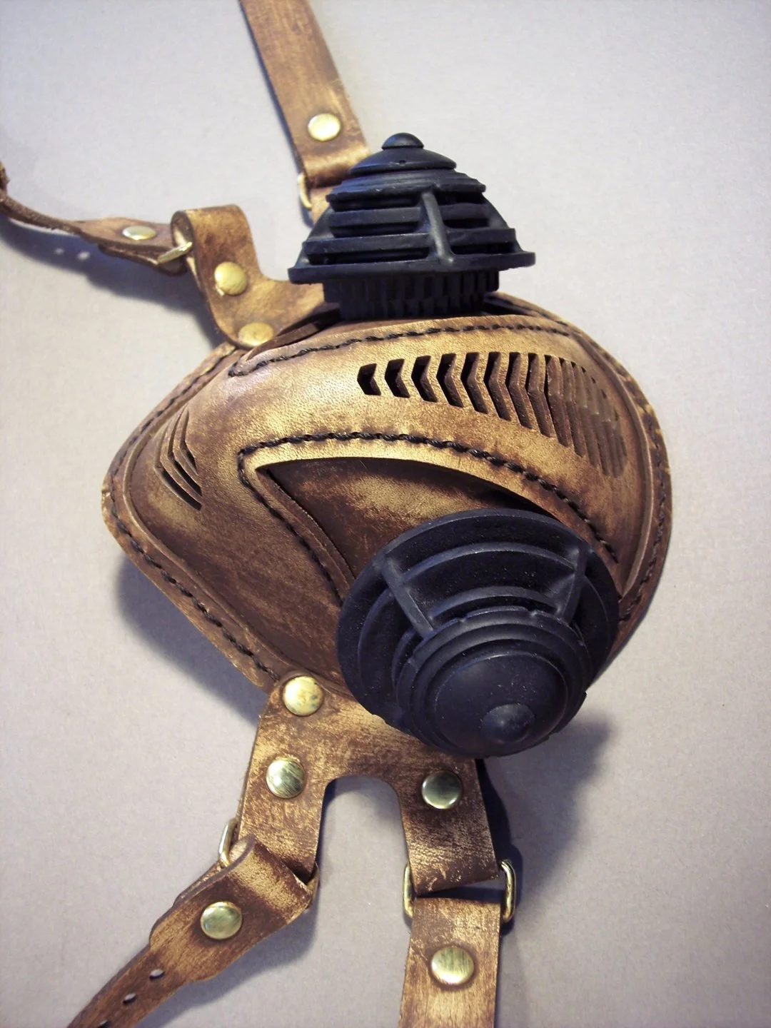 The two resin canisters as shown can be purchased at my Etsy shop, or you can create your own. Mine attach to the mask using a bolt and washer. Attach two canister bolt covers to inside of mask with contact cement.